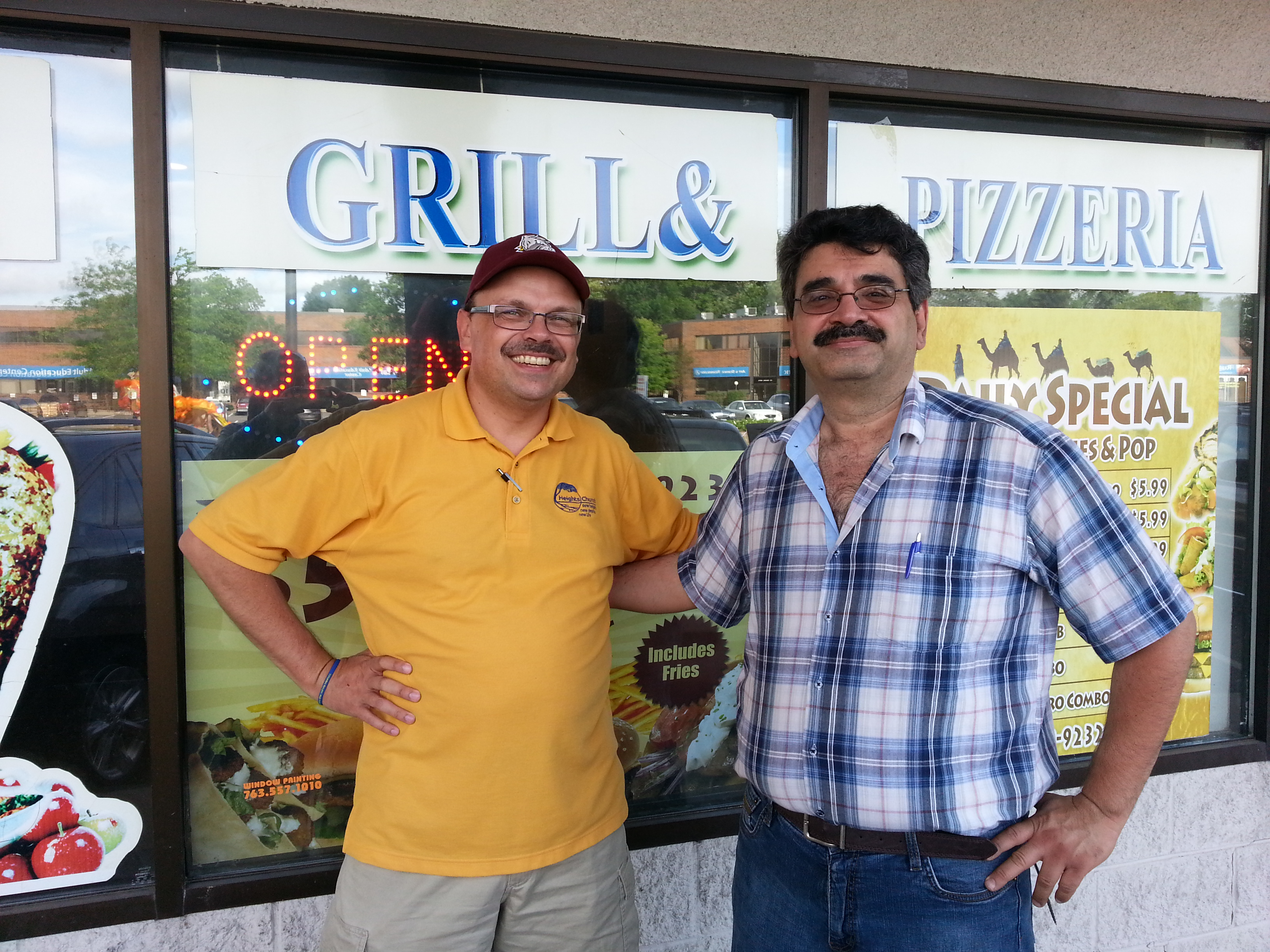 This year we approached him and asked if we could help. We would give him money to cook up samples and help defray his costs. We would make small flyers advertising this sample was courtesy of our church and Yafa Grill and he agreed to allow a coupon to be put on the back. Then our church volunteers would pass out samples along the parade route and tell people where it came from. Fouad also had us attach the small flyers to his takeout menu so people could see his full menu.