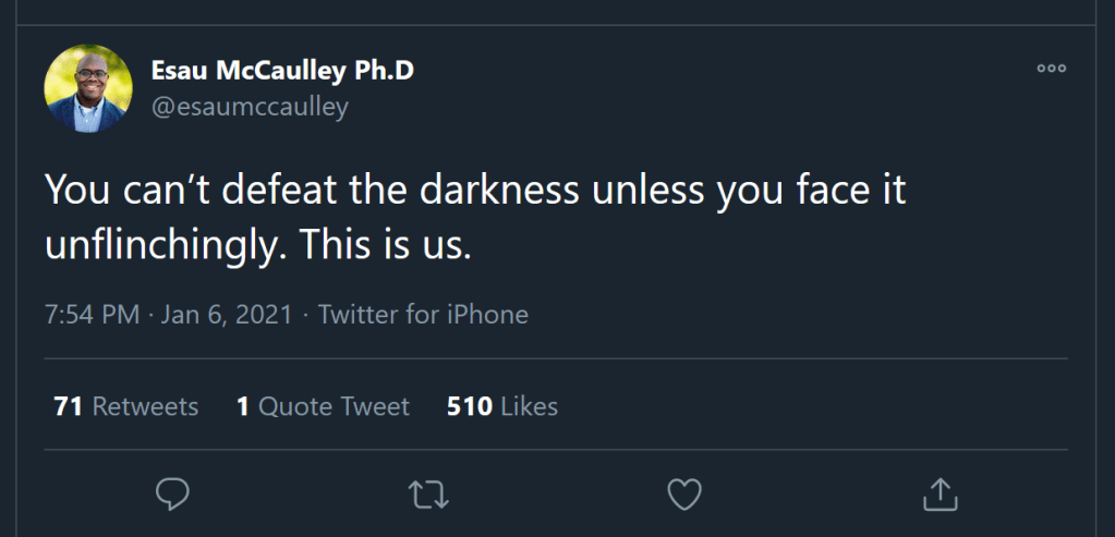 All kinds of people have said in the last 24 hours, as so many good people have tried to say in other dark hours, “This is not who we are.” With all due respect, with the events of January 6, 2021 etched in our brains, this IS us. It is who we are because we keep repeating it.
