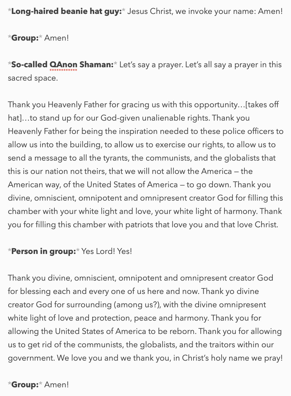 I’ll also call out the blatant Christian Nationalism on full display during the insurrection of January 6: