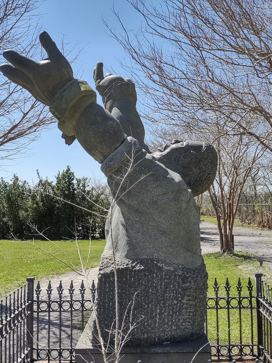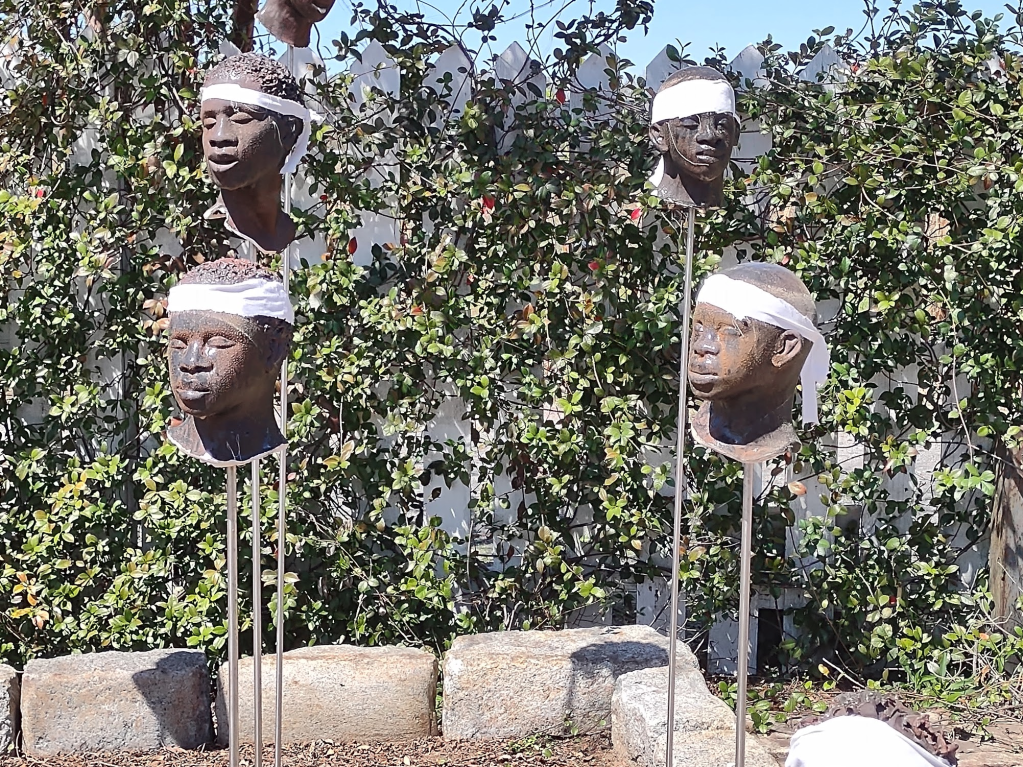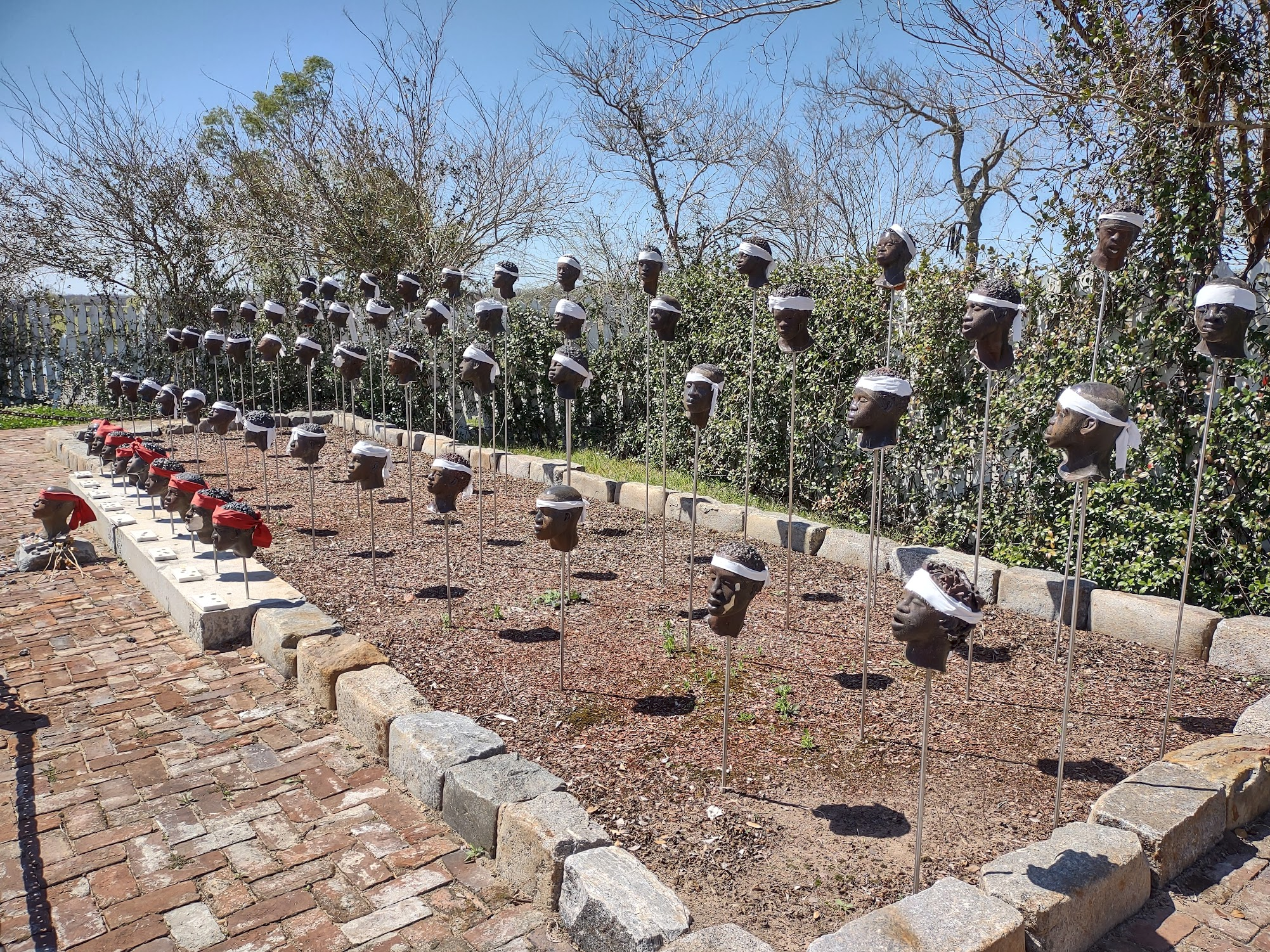 It is the model heads put on posts to remember the 1811 German Coast Rebellion. The leaders of the slave rebellion were immediately convicted and sent back to their owners where they would be executed and their heads cut off and impaled so everyone on the plantation had to walk by them every day…