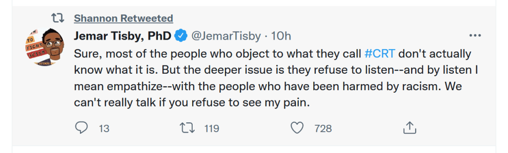 As whites, we just don’t want to take the time to listen and learn. We’ll read what we agree with and stop. At best.