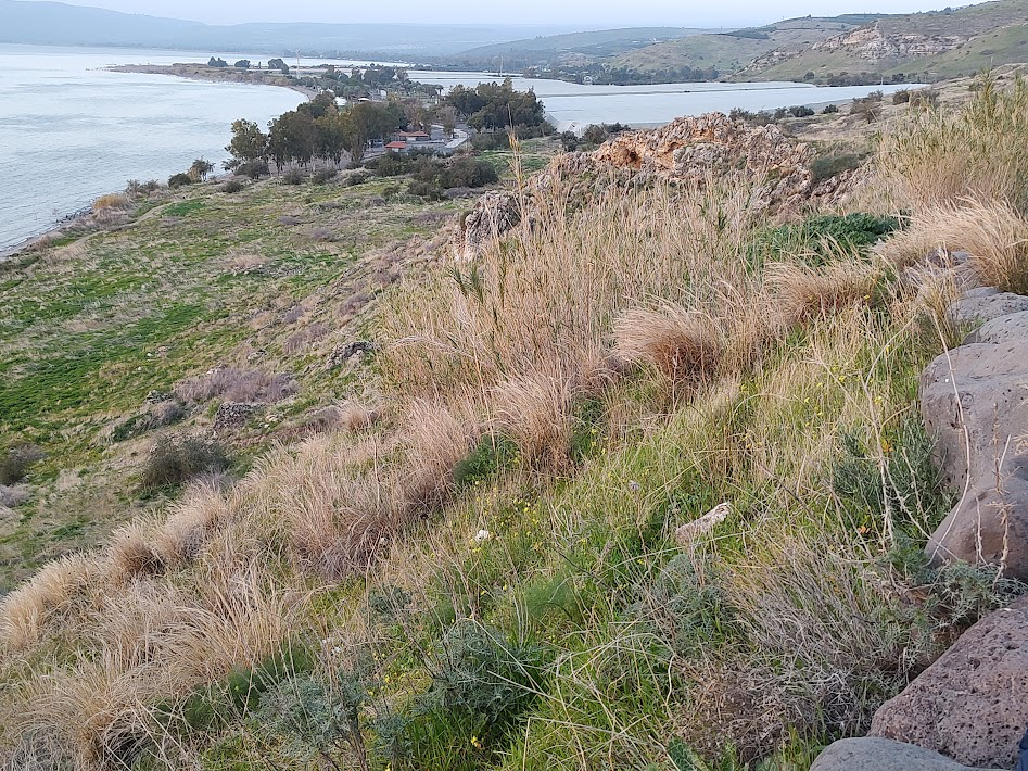 And as we are standing there admiring the sunset, our guide reminds us of the story of the demoniac in Mark 5. She pointed over to some caves that may have been tombs.